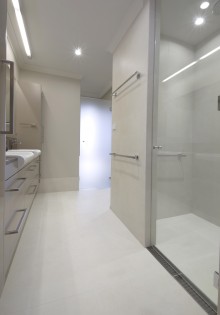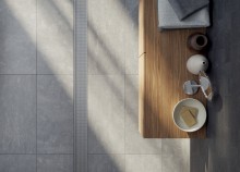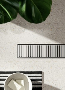 The Slimline range of grates and drains form a sleek partition between the wet and dry areas of the bathroom.