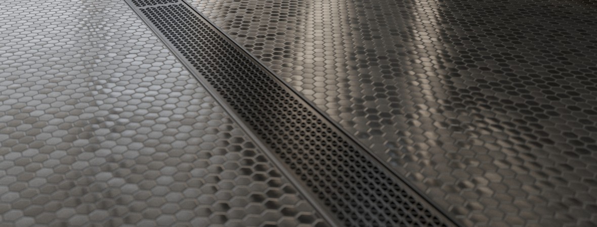 A world first in architectural linear grates, the partnership with Marc Newson has created a new decorative solution for wet areas, incorporating Newson's signature tessellated hexagonal pattern.